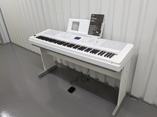 Yamaha DGX-660 in white 88 Key Weighted Keys Portable Grand, stand + pedal stock # 23131