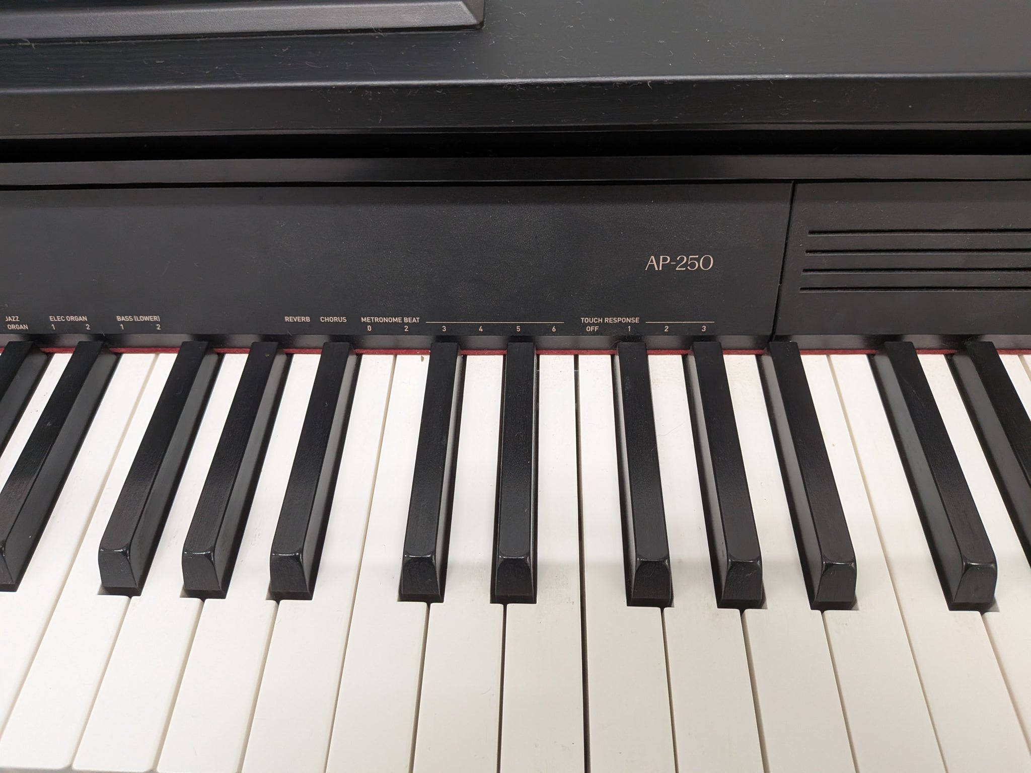 Textured keys offers the luxurious feel and texture as well as the smooth touch of a grand piano keyboard. The minutely detailed crimp surface finish inhibits finger slippage due to sweat and gives the sensation of a perfect fingertip fit, even when playing for extended periods.