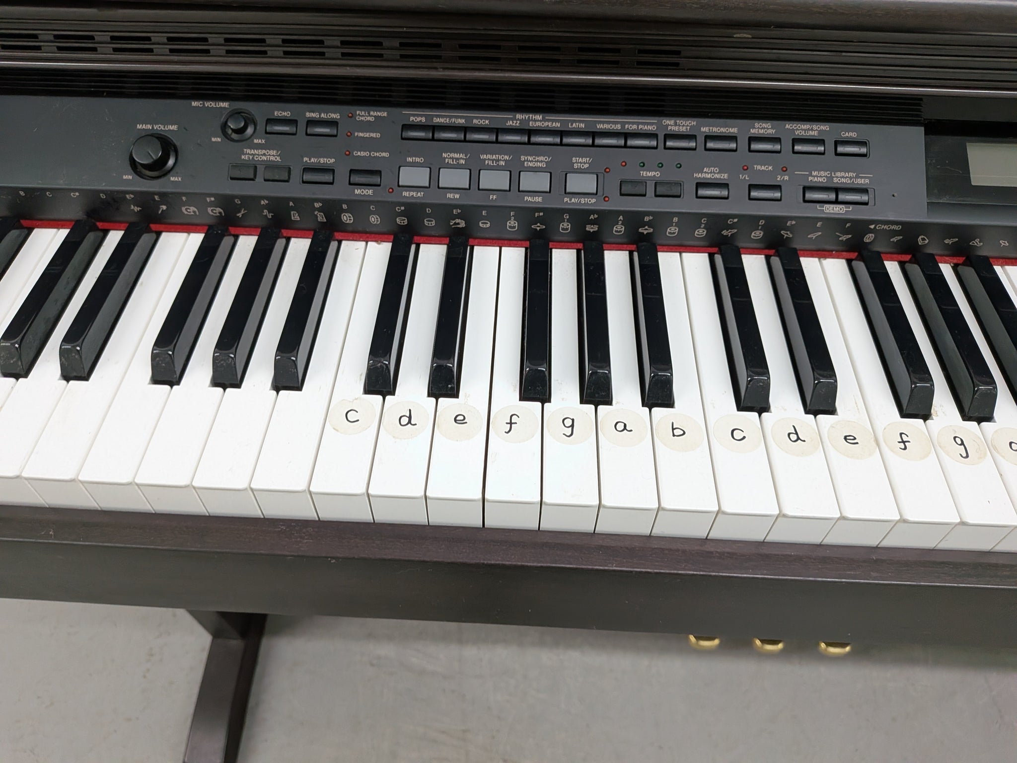 Good condition and full working order. Plays very well. Has some marks here and there consistent with age. Also has stickers on keys to aid learning. Please check photos and demo video.