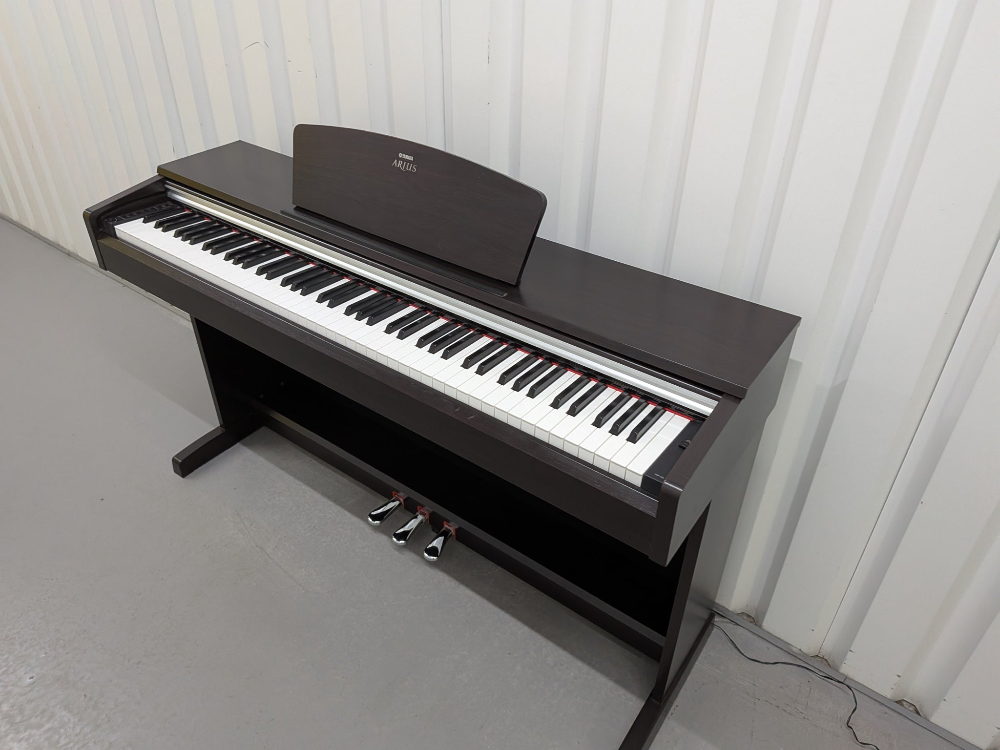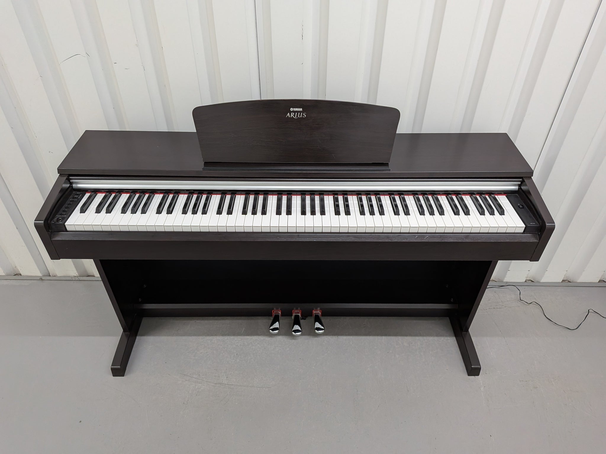 The Arius YDP-135R Digital Piano by Yamaha is an entry-level console piano ideal for beginning students to experienced players. It has been designed and engineered to deliver life-like piano sound and feel with its full 88 key GHS(Graded Hammer Standard) keyboard providing a heavier feel on the lower octaves while gradually getting lighter to the touch as you play the higher keys. Additionally, the keyboard sensitivity can be adjusted to hard, medium, soft, and fixed. Its simple yet elegant design with dark rosewood finish is sure to compliment any room or performance space.