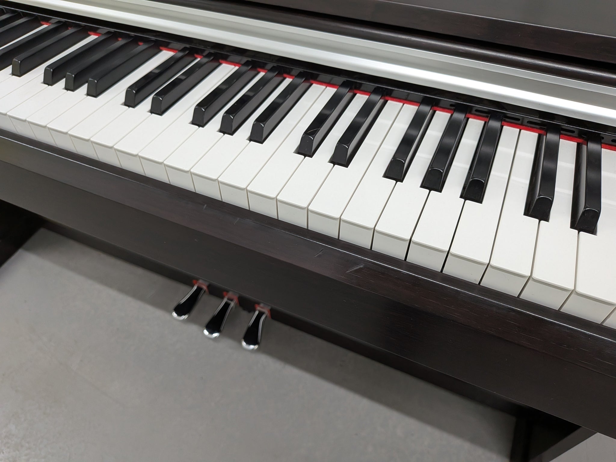 Just as on a traditional acoustic piano, lower notes on a GHS keyboard have a heavier touch, while the higher ones are more responsive to lighter playing. The matte finish of the black keys enhances the keyboard's luxurious appearance.