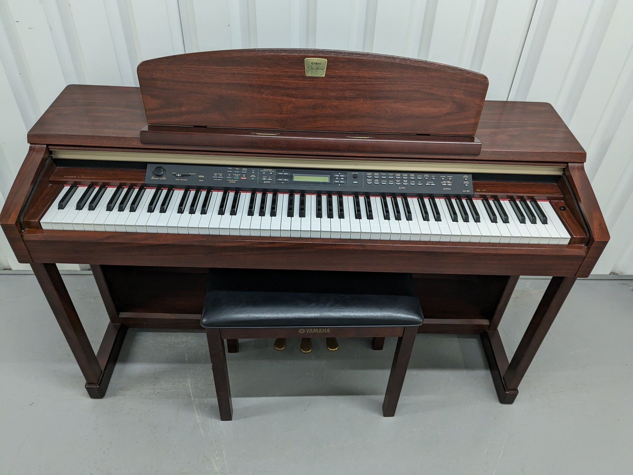 As well as a built-in TO HOST PC interface, the CLP150 feature a USB (Universal Serial Bus) interface. Now moving songs from your PC to your Clavinova is as easy as \”drag and drop\”. If you access the Internet with your PC, be sure to visit the Yamaha Web site. Here you’ll find a wealth of information about software for Clavinova’s including the latest innovation in computer music interactivity – Scorch. Scorch is a cutting-edge technology from music software developers that lets you purchase desired selections by downloading from the Web site at the click of a mouse. You can download MIDI song data and music score data as a set, and while displaying the score on your PCs monitor, have the CLP play the song, or print out the score.