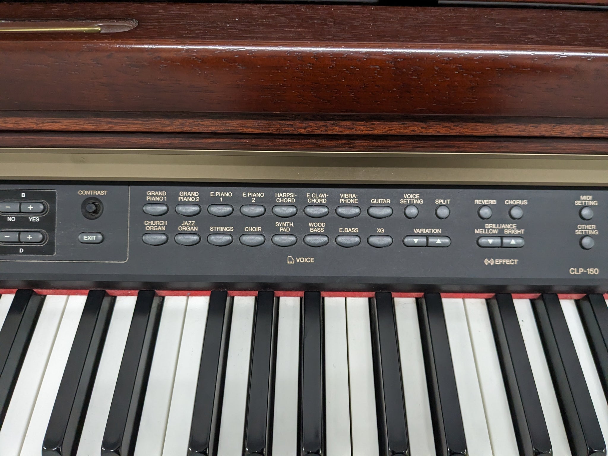 The CLP150 offers Stereo Sustain and Key-off Samples. Stereo Sustain Samples recreate the the resonances of the strings and and soundboard when the damper pedal is is pressed, that contribute to the the unique sound of a Grand Piano. Key off samples provide the delicate sound that the keys make when thy are released for another touch of realism