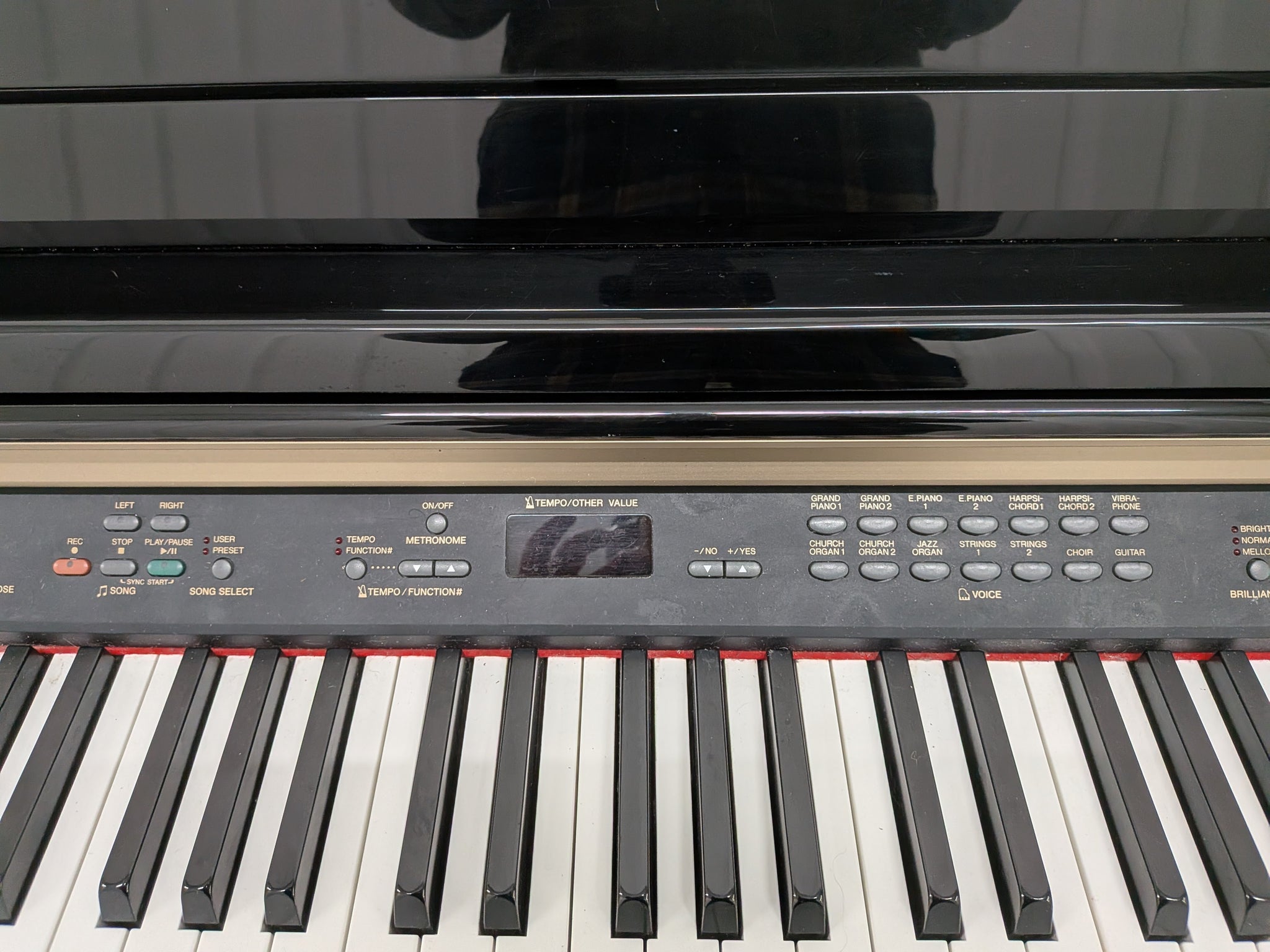 GH3 Keyboard3-level Dynamic Stereo Sampling AWM (Advanced Wave Memory) tone generationStereo Sustain Samples, Key-Off Samples30 Sampling BanksNew DDE (Dynamic Damper Effect)28 (14 x 2) voices64-note polyphony (Max.)PC interface (USB To HOST)Split, DualDigital Reverb, Chorus, Brilliance2-track song recorderInternal Flash ROM for song memoryUSB TO DEVICE for data storage7 temperaments40W x 2 amplifierMetronome3 foot pedals – Damper with half pedal effect, Sostenuto and SoftMIDI IN/OUT/THRUSliding key coverFolding music rest with music clipsDual headphone jacks and headphone hanger50 built-in demonstration piano songs with sheet music