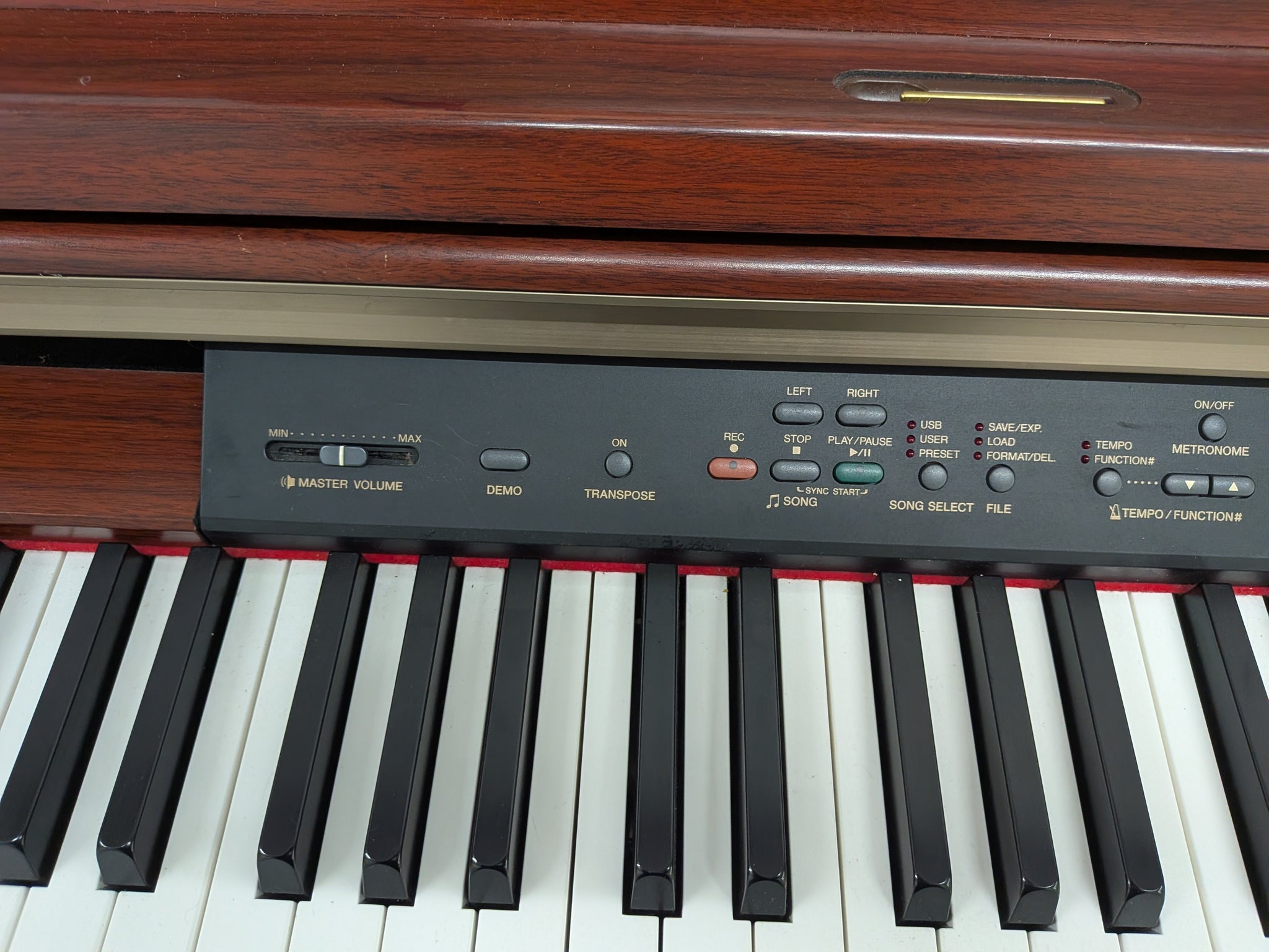 3 foot pedals (traditional piano style) with half pedal effect – for soft, sostenuto and sustain