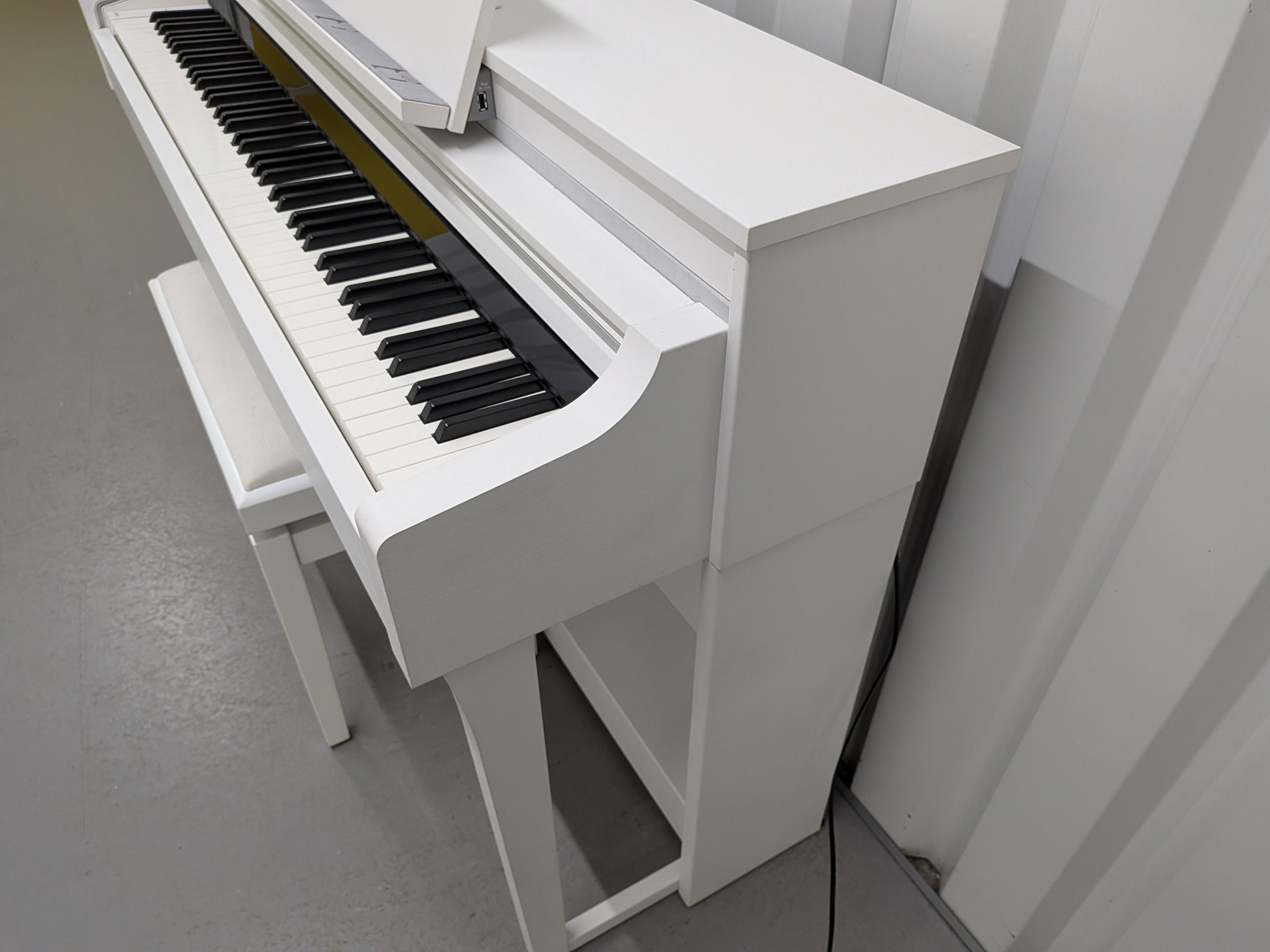 | Keyboard | NWX (Natural Wood X) keyboard with synthetic ebony and ivory keytops, escapement |